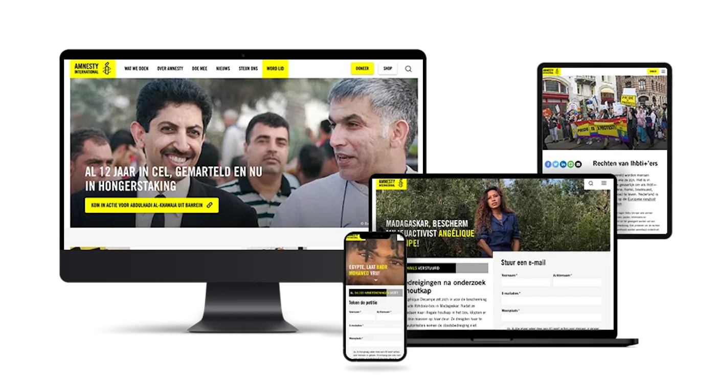 Als technology-partner ondersteunt us. Amnesty International al jarenlang in haar strijd voor mensenrechten. Een fijne samenwerking waar we als partners beide in blijven investeren. Ons partnership begon met de ontwikkeling van een nieuw online platform in 2016 en staat sindsdien garant voor een altijd up-to-date website met steeds nieuwe campagnes en mooie resultaten.